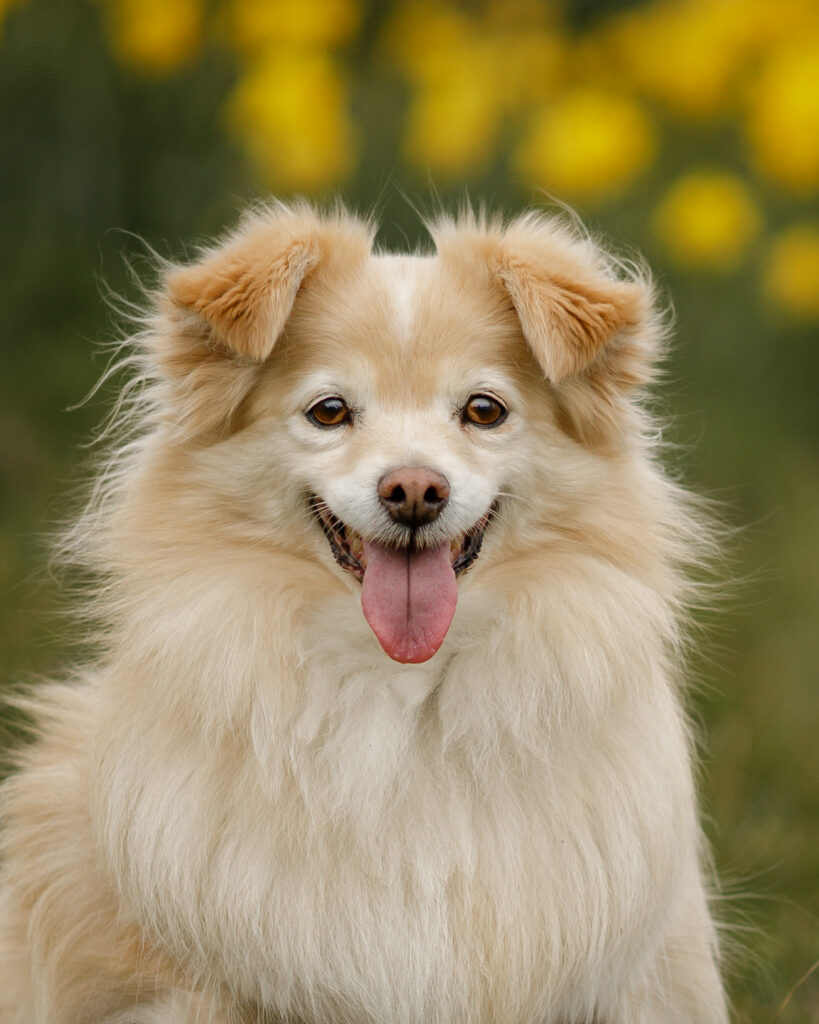 Eerst maakte we kennis met elkaar op de parkeerplaats van het bos in Voorthuizen, voor mij een thuiswedstrijd. Dankzij een Whatsapp groep leek het alsof we elkaar al een beetje kennen. Het eerste model stond klaar om op de foto te zetten. Dit was Buddy, een Pomchi van bijna 2 jaar oud.